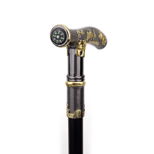 Canne Orthopédique Effet Sculpté sur le Manche avec Boussole